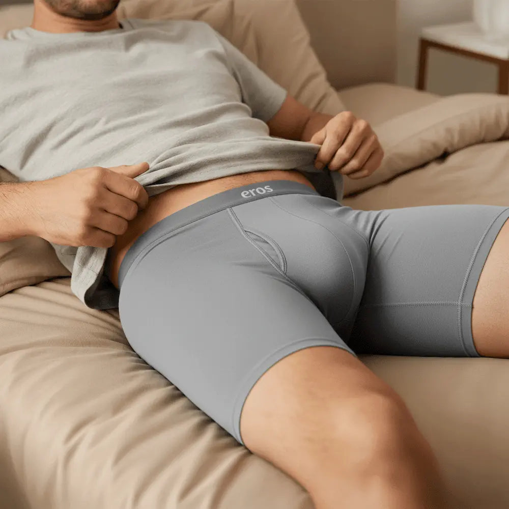 Bokserki Eros są wykonane z ultramiękkiej, oddychającej tkaniny bambusowej, która dopasowuje się do ciała jak druga skóra, zapewniając świeżość, suchość i komfort przez cały dzień.